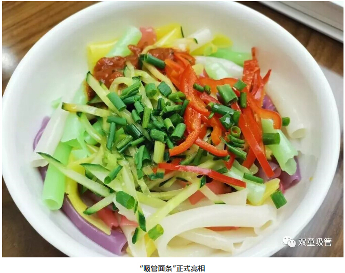 看!當吸管妹妹端出了一碗“面條”時,小記者們一涌而上,紛紛問道:“這就是可以吃的吸管嗎?”,“我們可以試吃嗎”,“好想嘗嘗是什么味道的呀”......