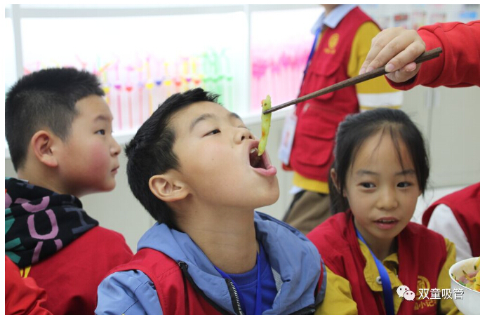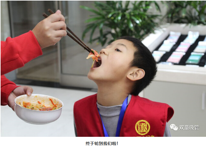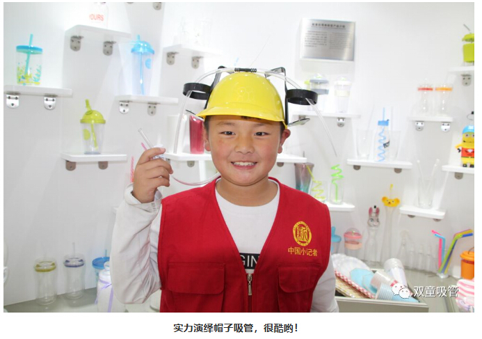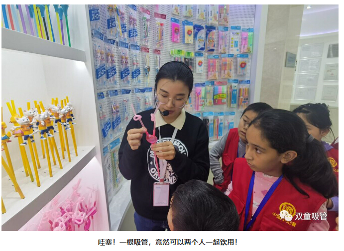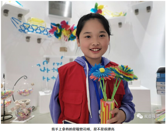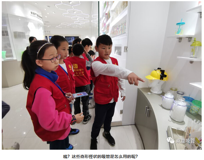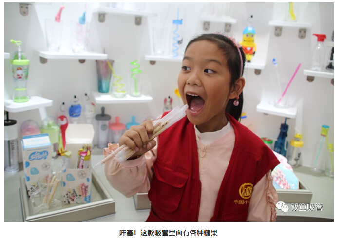 一走進“雙童”產(chǎn)品展區(qū)時,小記者們就在不停的尋找“雙童”可食用淀粉吸管。究竟這款“可以吃的吸管”藏在哪呢?