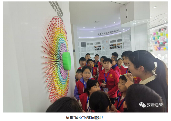 活動結(jié)束后,這群小記者們遲遲未離開“雙童”廠區(qū),究竟又在做什么呢?原來,大家是特地在中國吸管博物館門前為“雙童”的環(huán)保吸管代言呢!