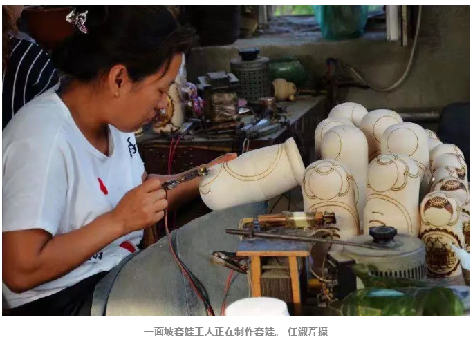 除了勞動密集型生產,技術創(chuàng)新也是套娃小鎮(zhèn)迅速發(fā)展的重要原因。如今,為了繼續(xù)穩(wěn)住市場,需要“繡花功夫”才能做好的套娃,又被一面坡的工匠們研究出平涂彩繪、烙畫燙金、磨砂、烤漆等多個工藝品種。