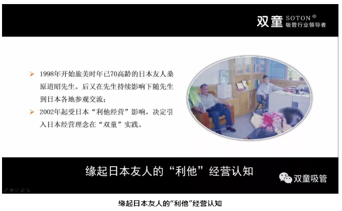 1998年,“雙童”樓仲平結識了一位旅美日本友人桑原道昭先生。桑原道昭先生在美國待了45年,會一點漢語。他會和樓仲平交流做生意的看法,并用日本人的視角和思想解讀節(jié)能環(huán)保、節(jié)約土地、員工關懷等方面的話題。