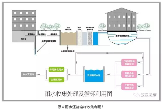 “雙童”廠區(qū)內(nèi)有200多個“雨水收集坑”,和蓄水池有序連接,并延伸進廠區(qū)的眾多角落。這些雨水在經(jīng)過過濾后可以作為消防用水等。雨水收集系統(tǒng)每年為“雙童”收集了10萬噸水,基本滿足了“雙童”總用水量的80%,每年為企業(yè)省下七八十萬元!