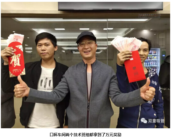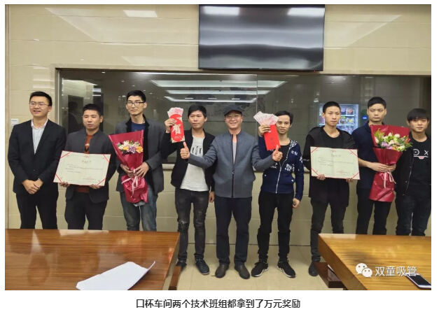 11月8日,在“雙童”隆重召開(kāi)的10月份優(yōu)秀奮斗者表彰大會(huì)上,口杯車(chē)間的兩個(gè)技術(shù)班組獲得了萬(wàn)元獎(jiǎng)勵(lì),成為公司生產(chǎn)班組的標(biāo)桿!