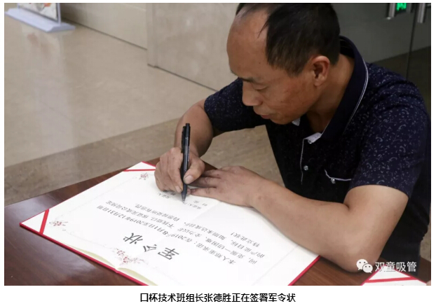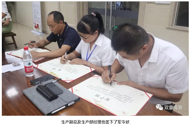 2019年8月20日,在"雙童"推動(dòng)企業(yè)改革后的第一次員工大會(huì)上,口杯技術(shù)班組長(zhǎng)張德勝鄭重地簽下了口杯技術(shù)班組的軍令狀,承諾在2019年8月1日至2019年12月31日期間,克服一切困難,全力以赴、不找借口,保證完成公司預(yù)定的產(chǎn)能目標(biāo),未達(dá)成目標(biāo)則自愿接受所有懲罰。