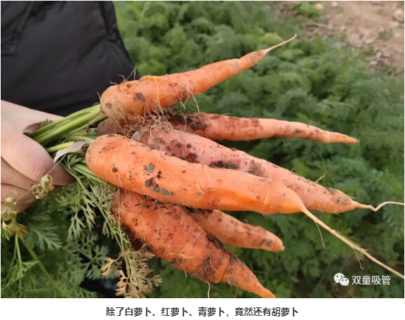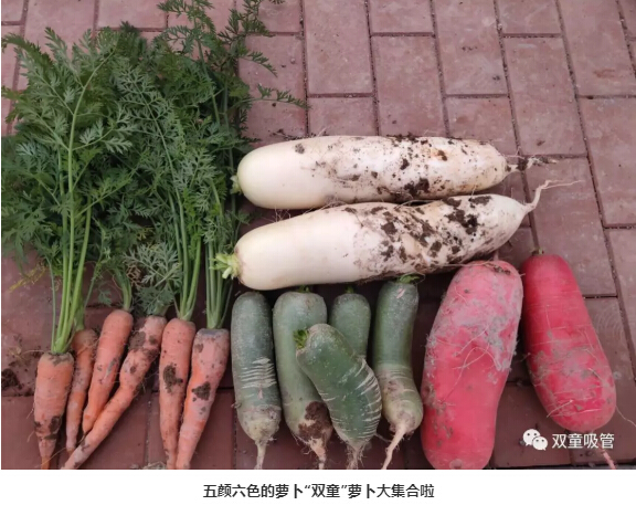 你以為在“雙童”的蘿卜大基地里只有白蘿卜?那就大錯特錯啦!除了白蘿卜,其實還有紅蘿卜、青蘿卜和胡蘿卜喲!