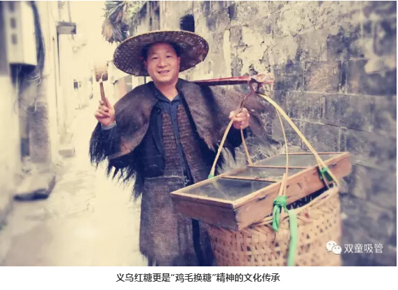 從明末清初開(kāi)始,義烏人就用義烏紅糖制作成糖餅,搖著撥浪鼓走街串巷,拿自己熬制的紅糖換取雞毛,這也是最早義烏人的經(jīng)商啟蒙。