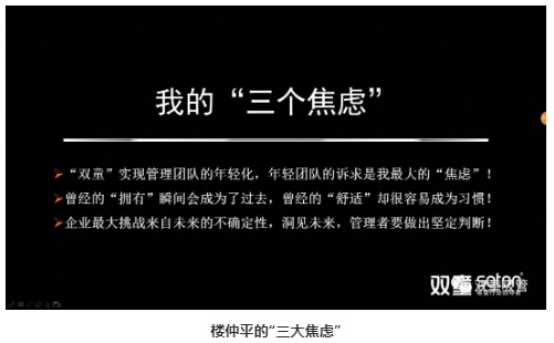當(dāng)年重組后“雙童”團(tuán)隊(duì)平均年齡不到三十歲,如何給這批年輕團(tuán)隊(duì)提供充分發(fā)揮和體現(xiàn)團(tuán)隊(duì)能力的廣闊舞臺(tái),如何滿足這批“嗷嗷待哺”的年輕團(tuán)隊(duì)的成長(zhǎng)訴求已然成為了樓仲平最大的“焦慮”。