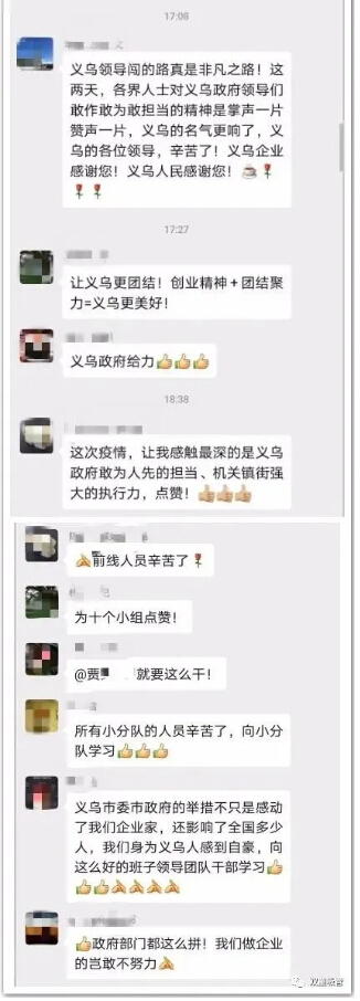 義烏市政府為企業(yè)復(fù)工采取的一系列舉措,獲得了所有人的一致好評(píng)和感謝,大家都為義烏有好政府和好領(lǐng)導(dǎo)慶幸,為身處在義烏而驕傲!