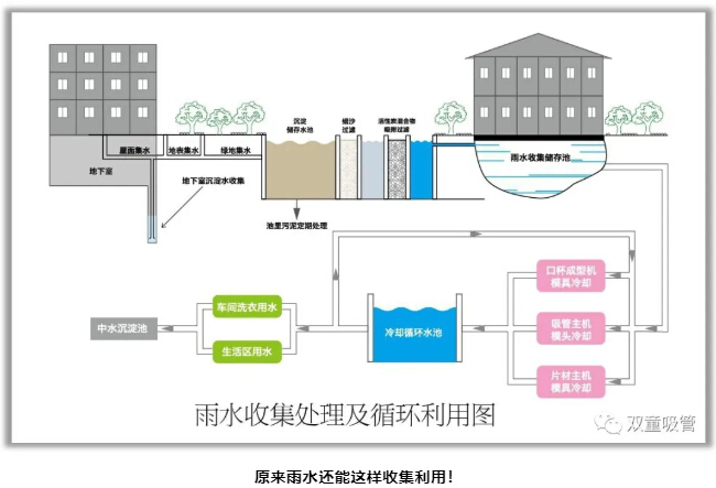 通過雨水收集系統(tǒng)將“雨水”進(jìn)行收集、利用,每年為“雙童”收集10萬噸水,基本滿足了“雙童”總用水量的80%,每年為企業(yè)省下七八十萬元呢!