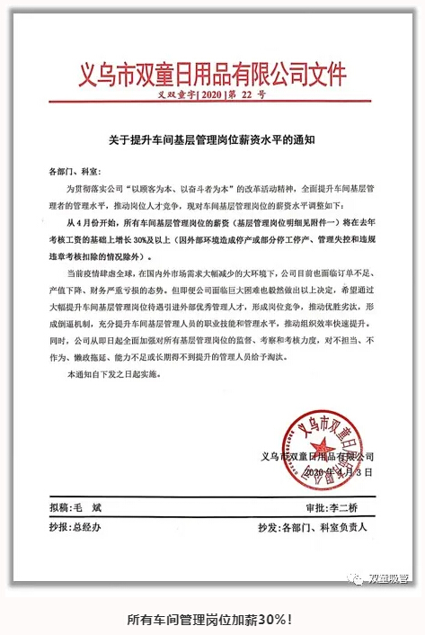 當前,全球疫情肆虐,經(jīng)濟環(huán)境急劇惡化,不少企業(yè)陷入經(jīng)營困境,開始了裁員降薪潮。在這樣的大背景下,2020年4月2日,“雙童”毅然推動第二波改革活動,并將改革主題確定為“組織效率已成雙童生死劫”!次日,“雙童”發(fā)布了一份紅頭文件,明確提出給員工加薪且至少30%以上,引發(fā)了全廠沸騰!這背后究竟是何邏輯?有何深意?