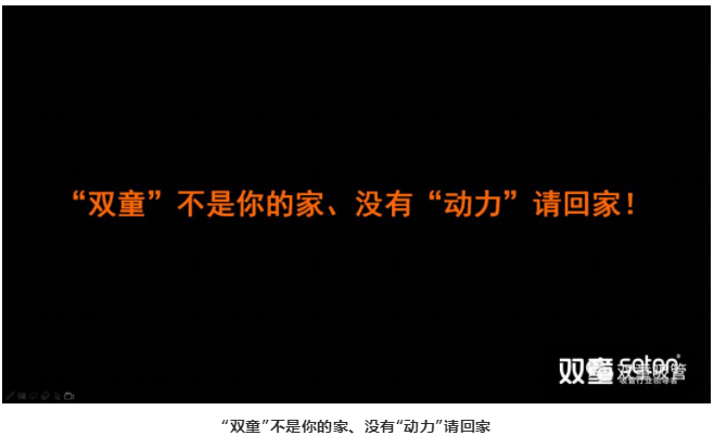 實(shí)際上,這句話早在去年8月企業(yè)發(fā)動(dòng)第一次重大改革時(shí)就被提出,并持續(xù)作為企業(yè)的重點(diǎn)宣傳標(biāo)語(yǔ)。接下來(lái),吸管妞將對(duì)這句話進(jìn)行重點(diǎn)剖析,讓大家明白為何“‘雙童’不是你的家、沒(méi)有‘動(dòng)力’請(qǐng)回家”。