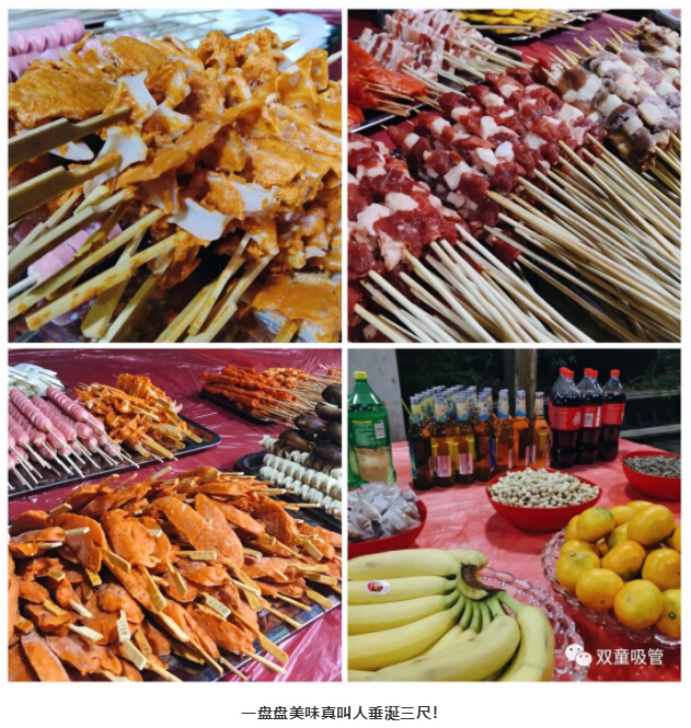 走進生日會現(xiàn)場后,首先映入眼簾的就是滿滿一桌的燒烤食材:羊肉串、牛肉串、五花肉、雞柳、里脊肉……放眼望去全是肉,簡直就是肉食主義者的天堂(擦擦口水