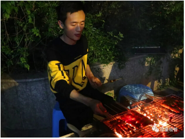 大家爭相圍坐在燒烤爐前準備一展身手,你別說,一個個都烤得有模有樣的,快來看看哪一位能成為本次生日會的“燒烤大師”吧!