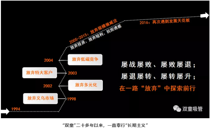 答:這些年來,‘’活下去”確實已經(jīng)成為“雙童”最大的使命。對我們而言,提出“活下去”這樣一種危機理論,是因為在外部動蕩環(huán)境下,計劃沒有變化快,這就要求企業(yè)做出轉(zhuǎn)變,這種轉(zhuǎn)變是內(nèi)在的,其本質(zhì)是提醒組織成員,通過直面“死亡”,獲得反悟,讓自己重生。并且,我們所說的“活下去”,并不是茍且偷生,而是要有價值、有尊嚴地“活下去”,唯有如此,這樣的使命對“雙童”的長期發(fā)展才更有意義。
