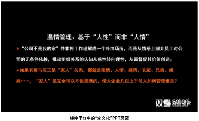 再者,如果老板與員工是家人關系,那就只講親情、人情、感情,不講規(guī)則。試想一下,偌大一個企業(yè),幾百上千號人都是“家人”關系,組織應該如何管理維系?