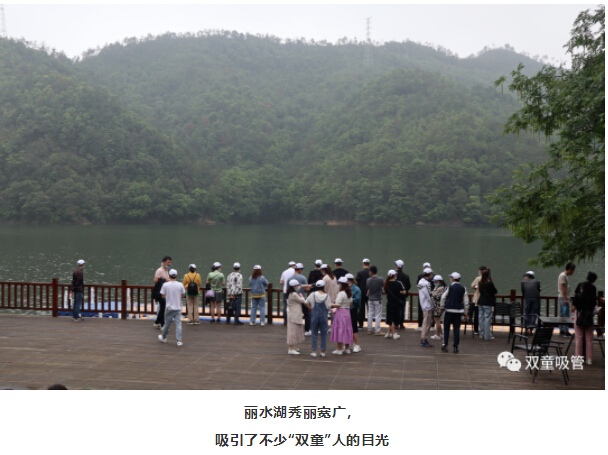 一進入神麗峽景區(qū),一旁的麗水湖吸引了“雙童”人的目光,湖水碧波蕩漾,山巒起伏,有種超凡脫俗的美。