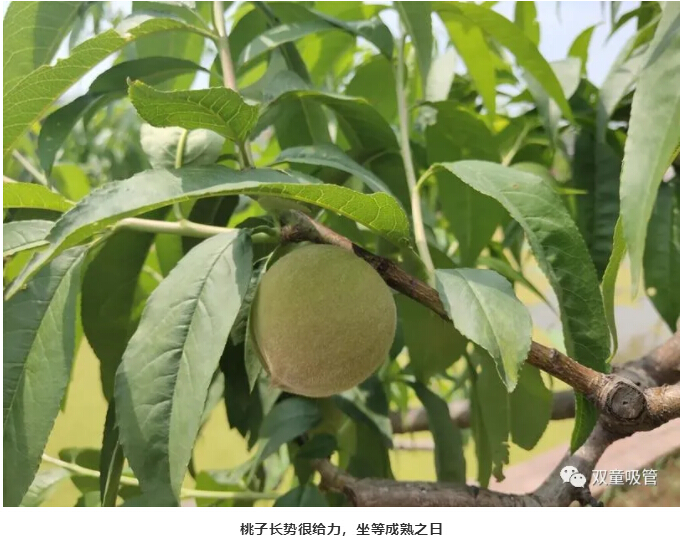 瞧!桃樹上的桃子個(gè)頭已經(jīng)這么大了,再耐心等待一段時(shí)間,吸管妞又有口福了!