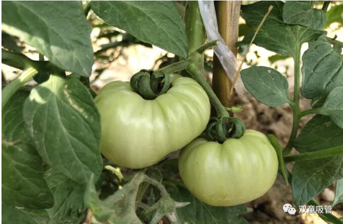 瞧,今年的番茄種植面積比去年可增加了不少,一根藤上依舊是碩果累累,結(jié)出好幾個(gè)番茄,大的,小的......看著這番茄的個(gè)頭,吸管妞吃一個(gè)都管夠了!