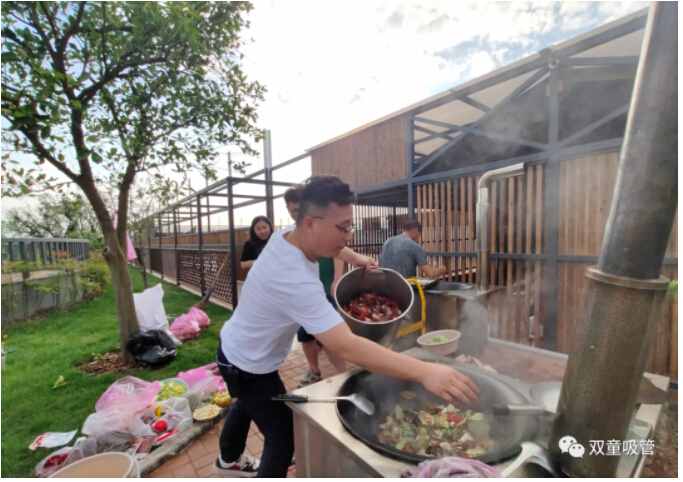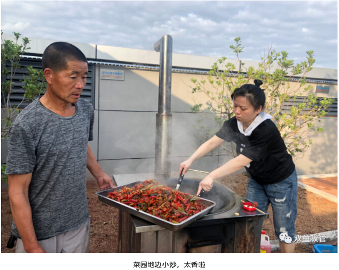 一切準(zhǔn)備就緒,我們將廚房直接轉(zhuǎn)移到了菜園地邊,放上鍋爐直接開炒啦!現(xiàn)炒現(xiàn)燒的香味真是太贊了!