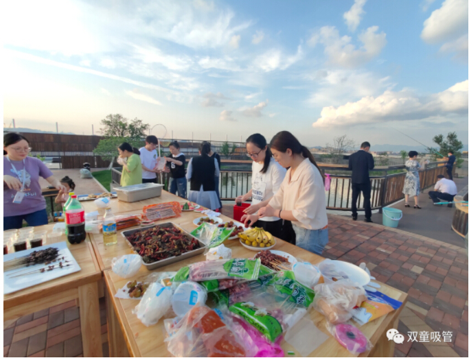不知不覺,夜幕已經(jīng)降臨。大家在夜幕下共同享用美味,觥籌交錯(cuò)間大家也放下了拘束,挨個(gè)和平日里最親近的同事們敬酒,表示埋藏在心底的感謝,共同享受這美好夜晚!