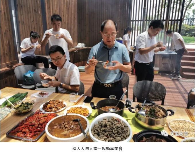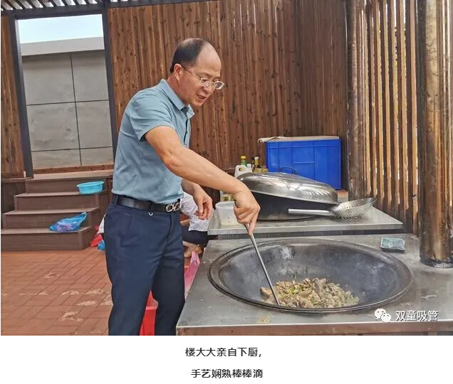 終于,忙碌了許久的樓大大也圓滿完成了自己的“廚師”任務(wù),來(lái)到席間與大家一同享用美味。
