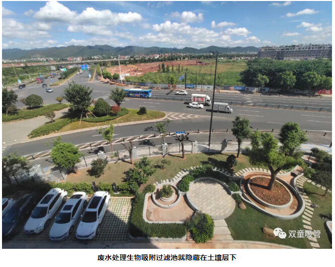 在這個(gè)過(guò)程中,員工日常生活中所產(chǎn)生的廢水過(guò)濾后,會(huì)流向生物吸附過(guò)濾池中,通過(guò)過(guò)濾池上栽種的樹(shù)木根須對(duì)水中的物質(zhì)、養(yǎng)分進(jìn)行再次吸附處理,這不僅能再次過(guò)濾處理廢水,同時(shí)也能樹(shù)木生長(zhǎng)的越來(lái)越好。