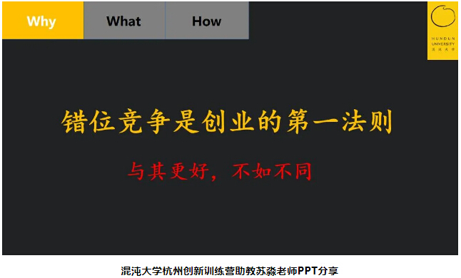 其中,蘇淼老師對“錯位競爭”這個思維模型和在座學員分享道:錯位競爭是創(chuàng)業(yè)第一法則,市場中的每一個領域幾乎都有巨頭,與巨頭正面競爭的成功率很小。
