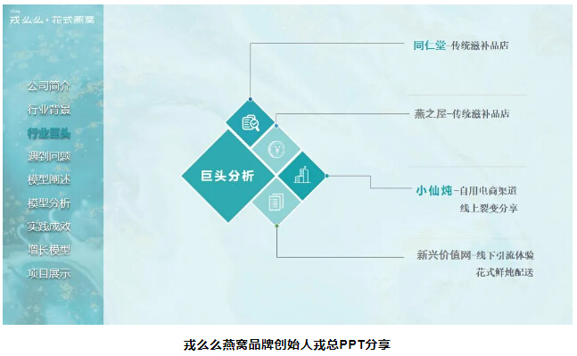 戎么么燕窩品牌通過與燕窩巨頭進行多維度分析,找到了自身的新興價值網(wǎng),并運用“顛覆式創(chuàng)新”,通過社群裂變,線下體驗進行引流,不僅打開了即食燕窩和花式燕窩甜品的新市場,同時包月配送的新形勢,也滿足了大眾需求,從而開辟出了一條差異化錯位競爭的創(chuàng)業(yè)之路。