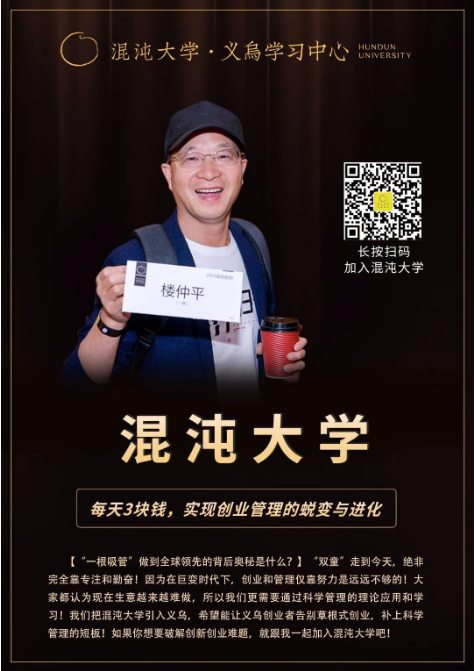 今年八月,樓仲平將“混沌大學(xué)”引進(jìn)義烏,就是想把上百堂讓他自己和“雙童”持續(xù)受益、不斷有新的進(jìn)步的課程,分享給每一位愛(ài)學(xué)習(xí)有夢(mèng)想,想在新時(shí)代里勇立潮頭的創(chuàng)業(yè)者們!