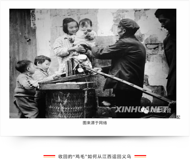 從1979年開始,我跟隨著爸爸在江西弋陽開始挑貨郎擔(dān),每個春節(jié)能換回來幾千斤的“雞毛”我們會把換回來的“雞毛”暫存在老表家里結(jié)束后再用板車拉到火車站托運回義烏。