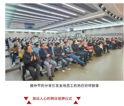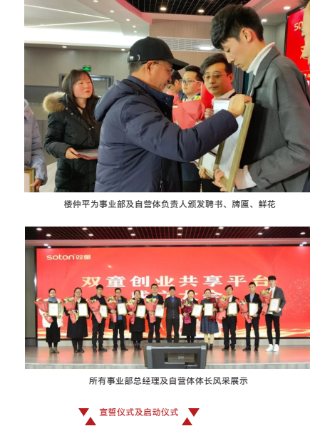 接下來,就是激動(dòng)人心的聘任授牌儀式環(huán)節(jié)。所有事業(yè)部及自營體的負(fù)責(zé)人依次上臺(tái),從樓仲平手中接過代表著責(zé)任和擔(dān)當(dāng)?shù)钠溉巫C書、榮譽(yù)牌匾及鮮花!