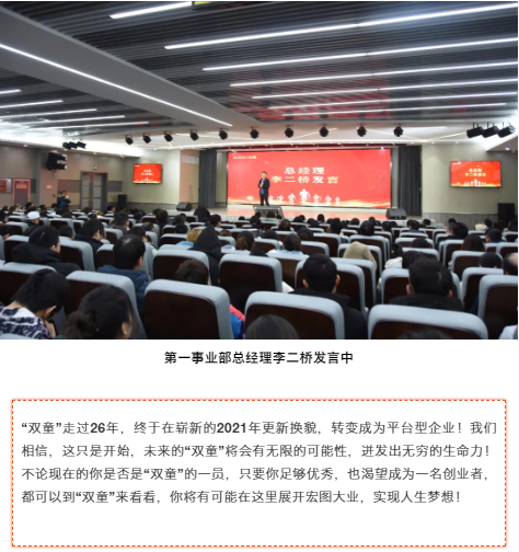 最后,樓仲平也現(xiàn)場(chǎng)呼吁全體“雙童”人,特別希望通過此次大會(huì)能夠影響有想法、有野心、有野性的員工,在創(chuàng)業(yè)與就業(yè)這個(gè)層面有更多的思考!獨(dú)樂樂不如眾樂樂,非常期待在雙童創(chuàng)業(yè)共享平臺(tái)上涌現(xiàn)越來越多的優(yōu)秀創(chuàng)業(yè)者,讓我們共同打造“雙童”成為培養(yǎng)創(chuàng)業(yè)者的“黃埔軍?!?!