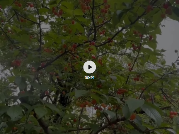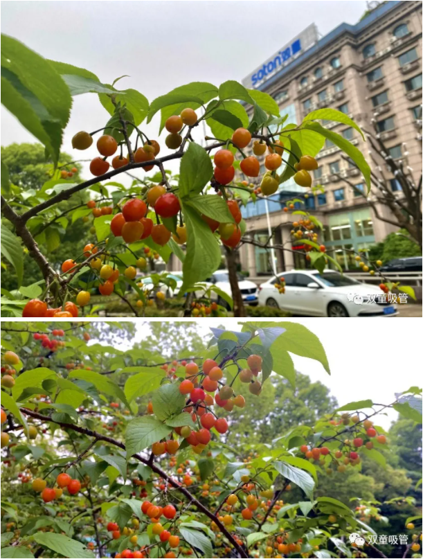 看!“雙童”的櫻桃樹上綴滿了櫻桃果,茂密的櫻葉也遮蓋不住紅橙相間的果實(shí)?!靶艋\”們散發(fā)出陣陣誘人果香,讓人不禁胃口大開,口水直流!