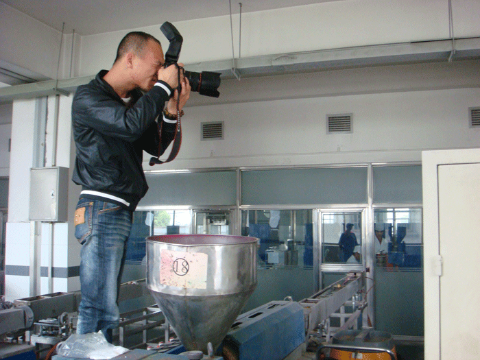 上圖:欄目組采訪拍攝公司藝術(shù)吸管系列