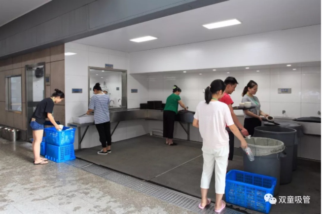 在“雙童”600余人就餐的員工餐廳里,濕垃圾也是“雙童”垃圾分類經(jīng)的一大重點!“五個碗”是雙童員工的餐具標配,在每張餐桌上都擺放著用餐規(guī)范的標語提示牌。