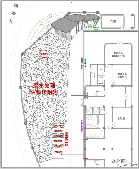 在這個過程中,員工日常生活中所產(chǎn)生的廢水過濾后,會流向生物吸附過濾池中,通過過濾池上栽種的樹木根須對水中的物質(zhì)、養(yǎng)分進行再次吸附處理,這不僅能再次過濾處理廢水,同時也能讓樹木生長的越來越好。