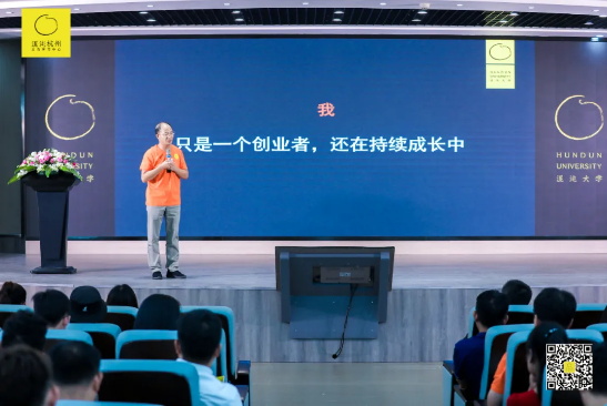 賈光校長分享之后,“雙童”樓仲平上臺做了個簡短的分享。樓仲平以“感恩、感謝”為開場,向所有混沌義烏的同學們表示了感謝的心情,混沌義烏學習中心至今已成立近一年的時間,每一個腳步都基于在場所有學員的支持。