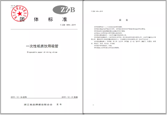 《一次性紙質(zhì)飲用吸管》浙江制造團(tuán)體標(biāo)準(zhǔn)