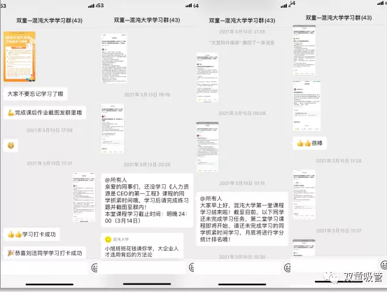 2021年4月1日,“雙童”攜手混沌大學(xué)義烏中心,共同創(chuàng)建了員工學(xué)習(xí)會新形式讓150位行政員工全部上大學(xué)。作為團報企業(yè),混沌義烏會組建線上學(xué)習(xí)群,每月會在群內(nèi)發(fā)布學(xué)習(xí)任務(wù),督促同學(xué)們學(xué)習(xí)打卡,并和企業(yè)學(xué)習(xí)領(lǐng)導(dǎo)小組負(fù)責(zé)人共同評選出優(yōu)秀作業(yè),并給予學(xué)分獎勵。