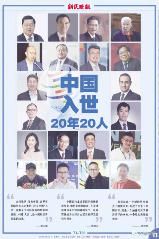 樓仲平入選《新民晚報》中國入世20年20人專題