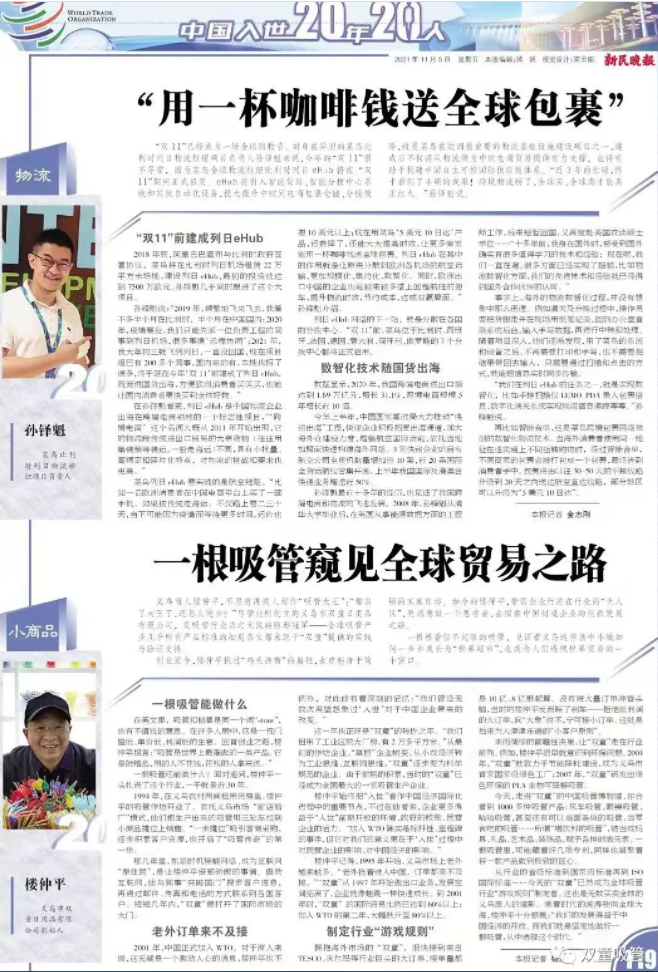 從行業(yè)的省級標(biāo)準(zhǔn)到國家級標(biāo)準(zhǔn),再到ISO國際標(biāo)準(zhǔn)……今天的雙童已然成為全球吸管行業(yè)“游戲規(guī)則”的制定者。這也是無數(shù)買賣全球的義烏商人的縮影。今天的義烏,已經(jīng)從“浙中小城”成長為“世界超市”。乘著時代的波濤駛向全球大海,樓仲平十分感慨:“我們的發(fā)展得益于中國經(jīng)濟(jì)的開放。而我們就是堅(jiān)定地做好一根吸管,從中透視這個時代?!?/span>