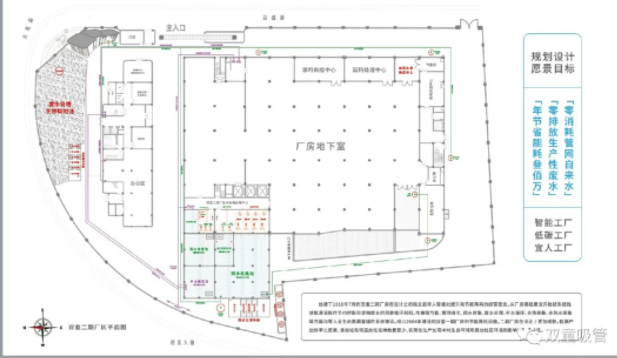 2020年年初,“雙童”二期新廠房投入使用,廢水收集中水回用系統(tǒng)在原來(lái)“雙童”一期廠房的基礎(chǔ)上進(jìn)行了大量的優(yōu)化和提升,讓員工日常生活中所產(chǎn)生的廢水不僅得到循環(huán)利用,而且還消滅了企業(yè)的廢水排放和污染,同時(shí)還為企業(yè)節(jié)省了大量水費(fèi)支出! “雙童”二期新廠區(qū):廢水收集中水處理原理圖 “雙童”二期新廠區(qū)節(jié)能降耗設(shè)計(jì)圖