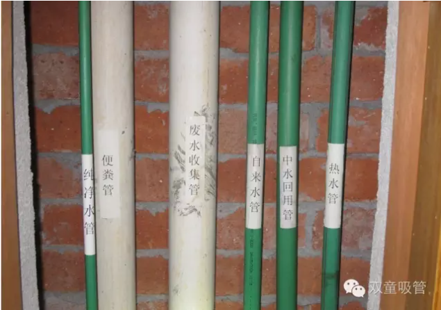 員工寢室樓內(nèi)細(xì)分管道, 通過(guò)這些管道將廢水匯集到一起