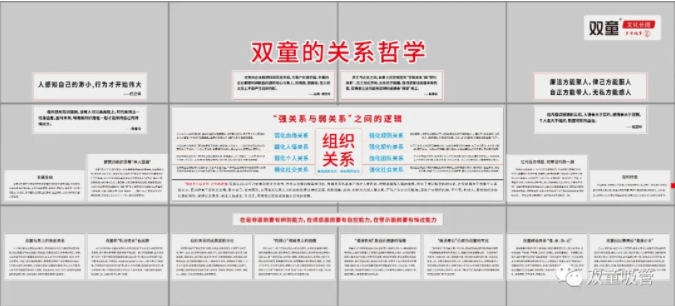 通過強(qiáng)化企業(yè)健康的社會關(guān)系,從而凸顯團(tuán)隊的組織價值和社會效應(yīng),將老板從繁雜的事物和社交關(guān)系中解脫出來,有更多的聚焦去做應(yīng)該做的事情。在“雙童”敢于放權(quán)授權(quán)??蛻魜砹?,由銷售團(tuán)隊去鏈接;交流伙伴來了,由文化宣傳團(tuán)隊負(fù)責(zé)接待。