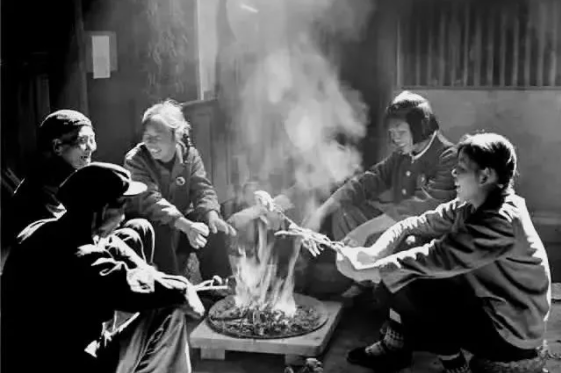 吃完晚飯有的時候會烤火,“雞毛換糖”很多時候會遇到下雨下雪天,山區(qū)路也不好,鞋和衣褲一般都會濕透,所以當(dāng)天的衣服必須換下來清洗一下,然后在烤火的邊上搭一個三腳架烤衣服。我們也會在烤火的邊上和老表一起嘮嘮家常,或者聽我爸爸講講故事。