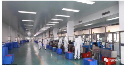 除了生活區(qū)域,“雙童”的生產(chǎn)廠房不同于大眾印象中的傳統(tǒng)制造業(yè)。在2018年,“雙童”按高規(guī)格的建筑標準,所有硬件都采用“五星級”標準建造了“雙童”二期廠房。同時生產(chǎn)管理也在最大化利用空間,車間井然有序,美觀整齊,嚴格執(zhí)行無塵車間標準。