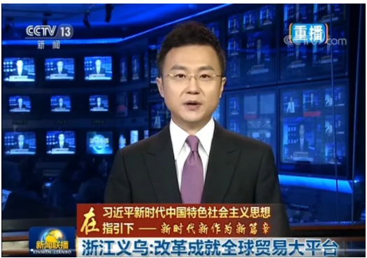 2019年12月7日,中央電視臺《新聞聯(lián)播》頭條以《【在習(xí)近平新時代中國特色社會主義思想指引下——新時代 新作為 新篇章】浙江義烏:改革成就全球貿(mào)易大平臺》為標(biāo)題,聚焦義烏改革發(fā)展。
