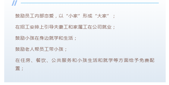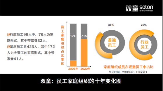 為了能讓員工全身心投入到工作當(dāng)中,在工作之余不再擔(dān)憂家庭生活?!半p童”鼓勵(lì)價(jià)值型員工將配偶、老人和小孩接到公司就住,最大程度上解決價(jià)值型員工的后顧之憂。因此,2004年9月開始,“雙童”就明確把中國傳統(tǒng)“家文化”作為員工管理的著力點(diǎn):