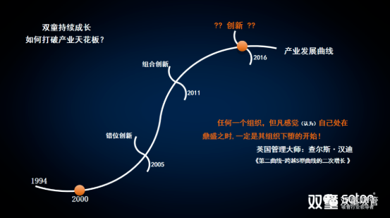 “雙童”從2011年底啟動的“再造經(jīng)理人”組織變革,于2015年底全面完成。重新組建的“雙童”行政團隊在當時平均年齡不到30歲,核心團隊的大部分都是90后,新生代員工已成為“雙童”的核心管理骨干。借由2011年的五年發(fā)展規(guī)劃,“雙童”實現(xiàn)了現(xiàn)代化企業(yè)組織變革,解決了作為傳統(tǒng)企業(yè)的“老、大、難”問題。
