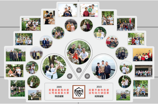 雙童早期團隊的很多成員,都是在公司內部找到自己的人生伴侶,生兒育女、組成一個個小家庭,逐漸形成雙童特色的“家文化”。目前,以家庭形式存在的雙童員工占員工總數的一半多,在他們當中,有夫妻工、有帶小孩的、還有老人帶小孩的家庭,長期生活在公司的家屬就有一百多人,其中在本地就學的員工子女有50多人。雙童再次重申:我們鼓勵在公司就業(yè)的單身員工通過認識彼此,找到終生伴侶,在公司組建家庭、撫養(yǎng)子女,鼓勵有條件的員工帶父母一起在公司生活。